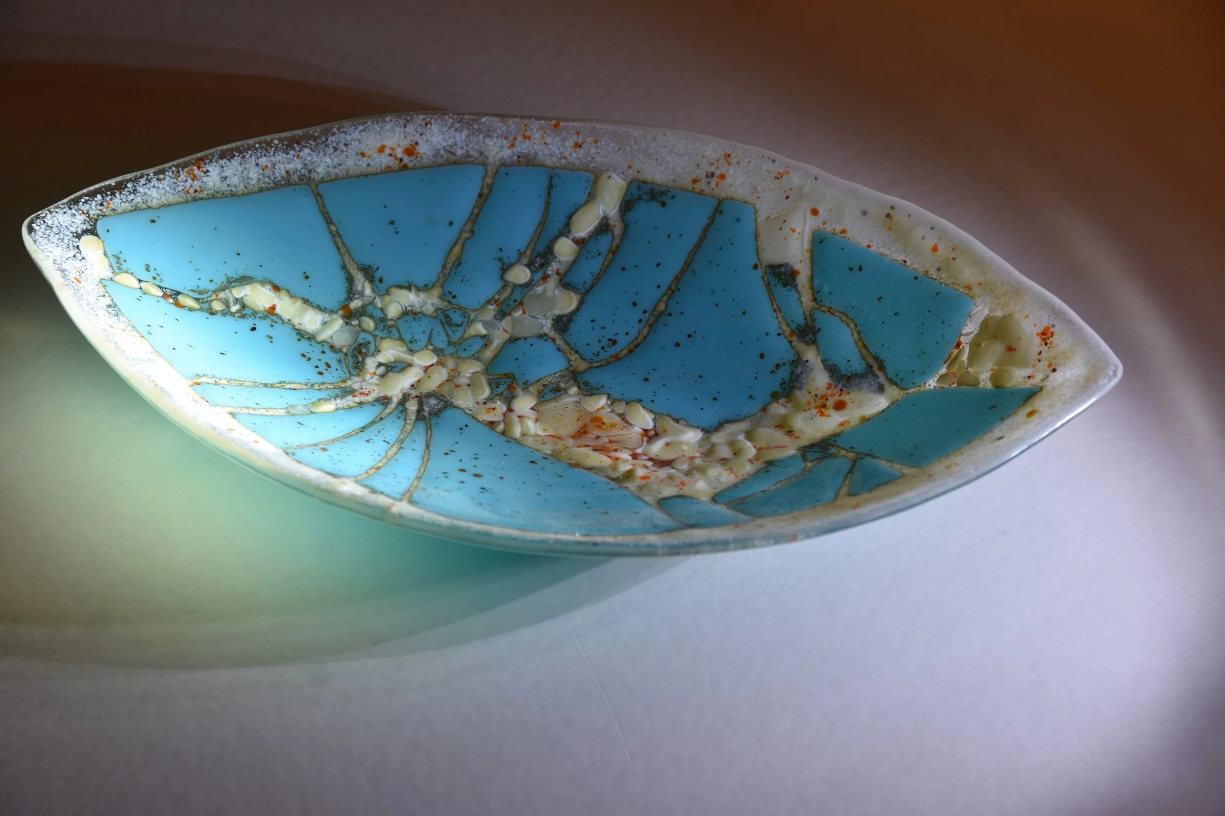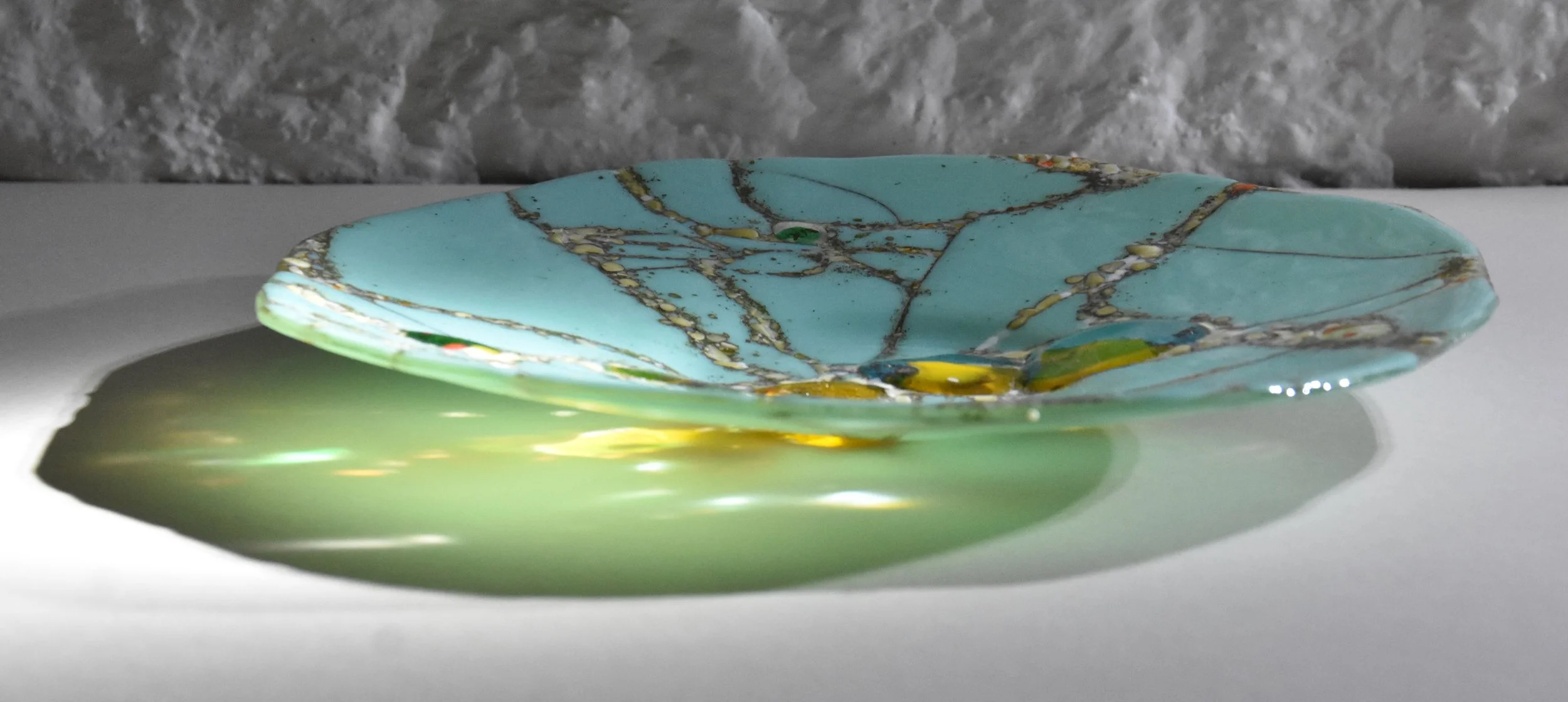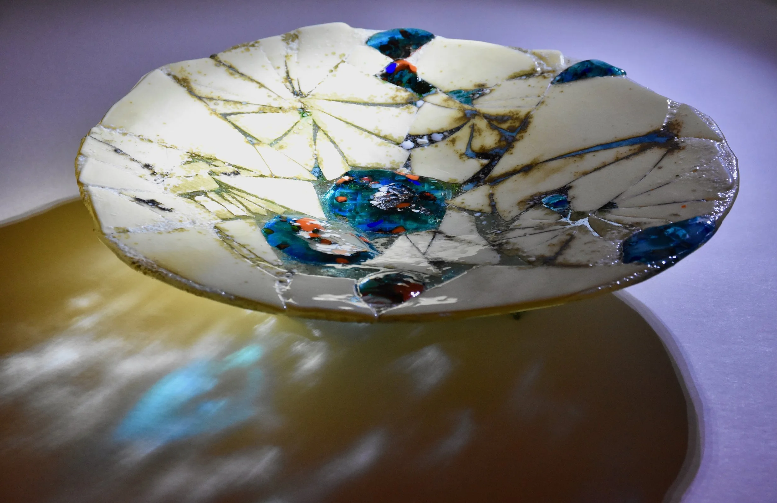 Hidden Traces is a collection of vessels and tiles where the surface is broken to reveal that which is hidden below. As in kintsukuroi pottery they symbolise resilience and the beauty of imperfections,